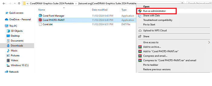 Bước 3: Mở thư mục “Corel PHOTO-PAINT”, chọn Run as administrator để khởi chạy.
