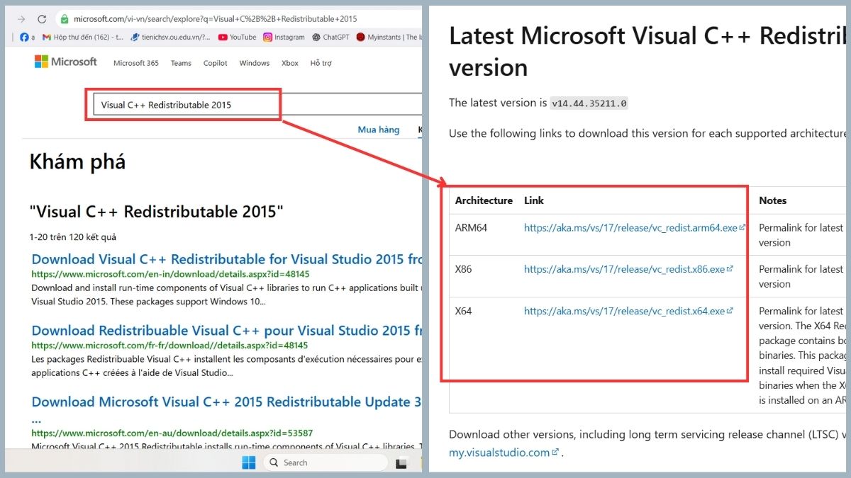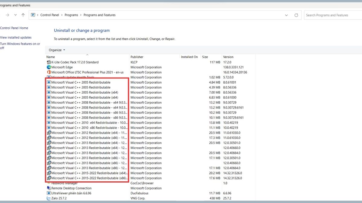 - Kiểm tra các gói Visual C++ Redistributable từ 2005 đến 2019